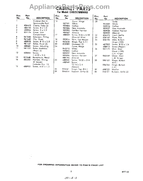 Parts for Whirlpool EHD252MMWR0: 03 - Section Parts