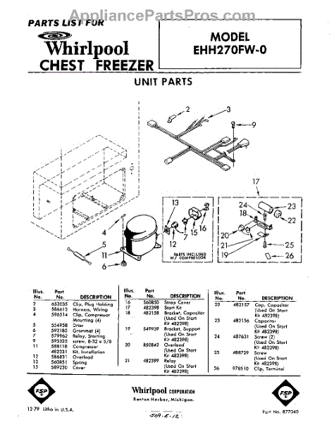 Parts for Whirlpool EHH270FW0: 01 - Section Parts