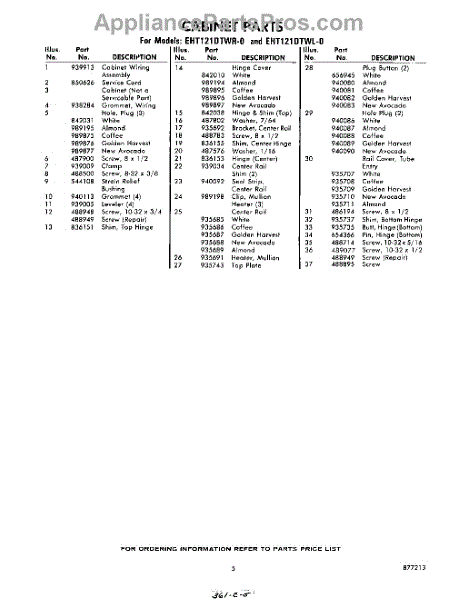 Parts for Whirlpool EHT121DTWR0: 05 - Section Parts