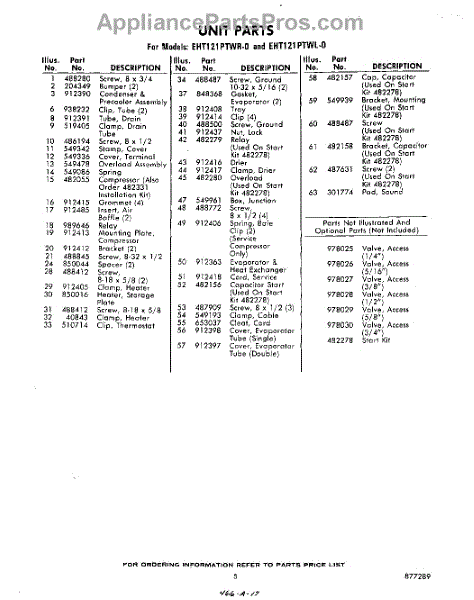 Parts for Whirlpool EHT121PTWR0: 05 - Section Parts