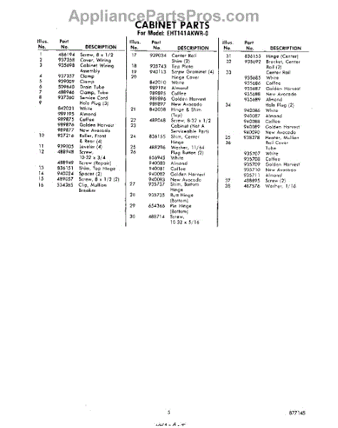 Parts for Whirlpool EHT141AKWR0: 05 - Section Parts
