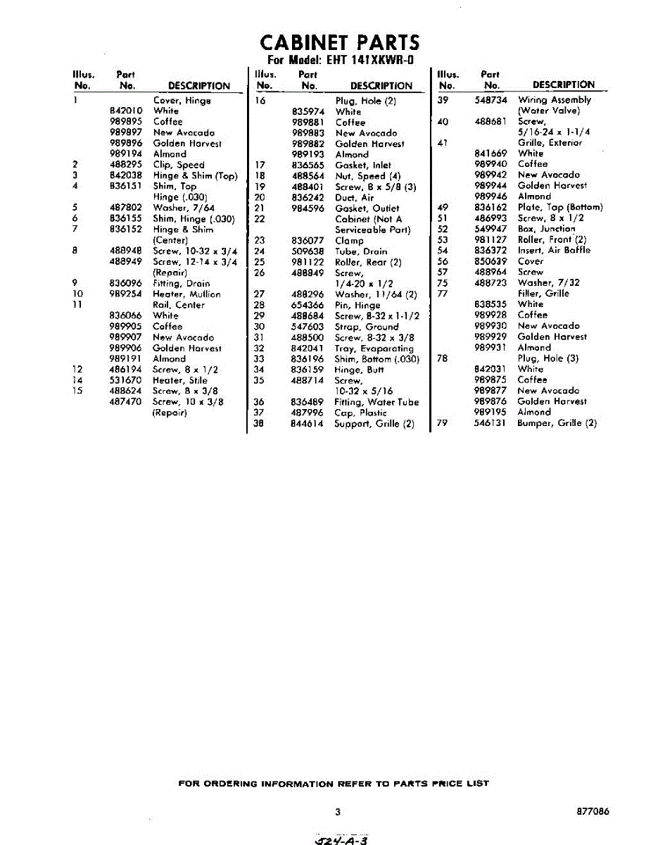 Parts for Whirlpool EHT141XKWR0: 03 - Section Parts