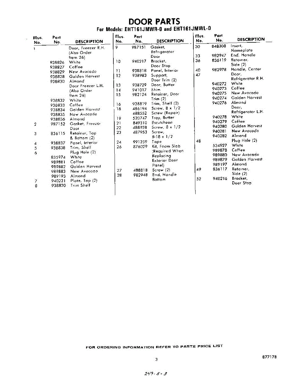 Parts for Whirlpool EHT161JMWR0: 03 - Section Parts