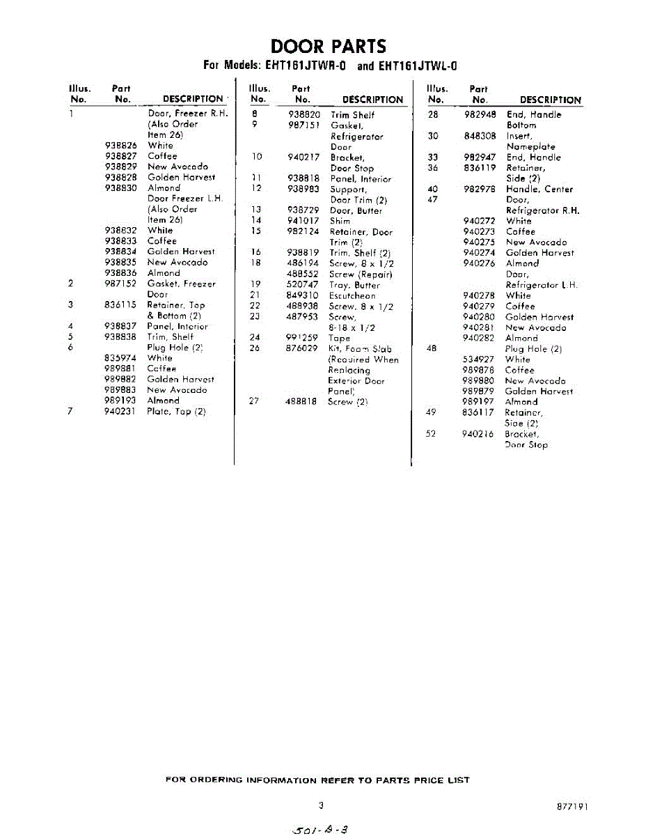 Parts for Whirlpool EHT161JTWR0: 03 - Section Parts