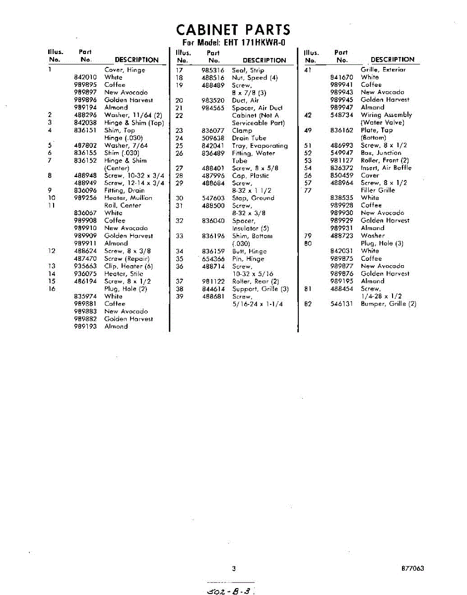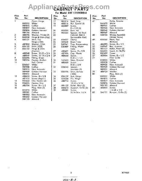 Parts for Whirlpool EHT171HKWR0: 03 - Section Parts