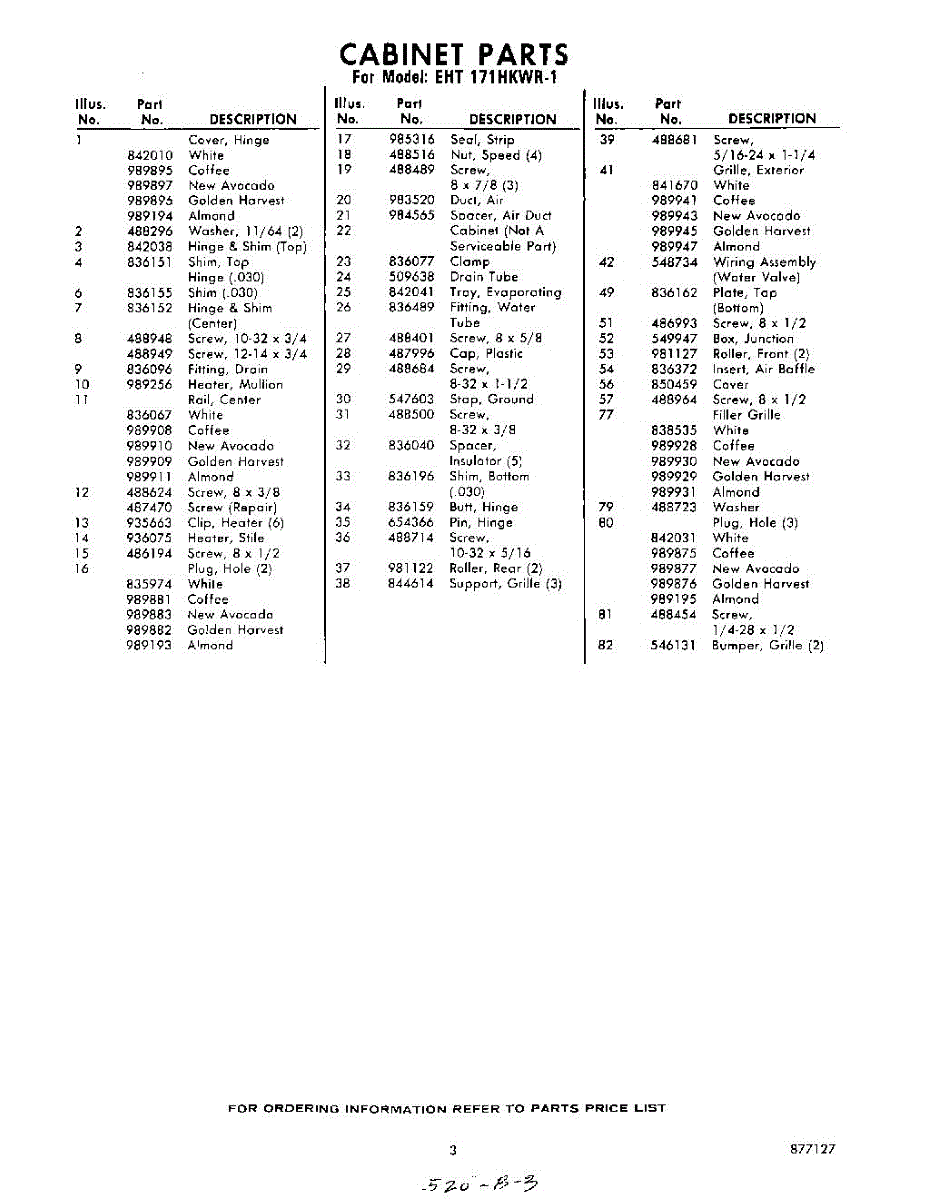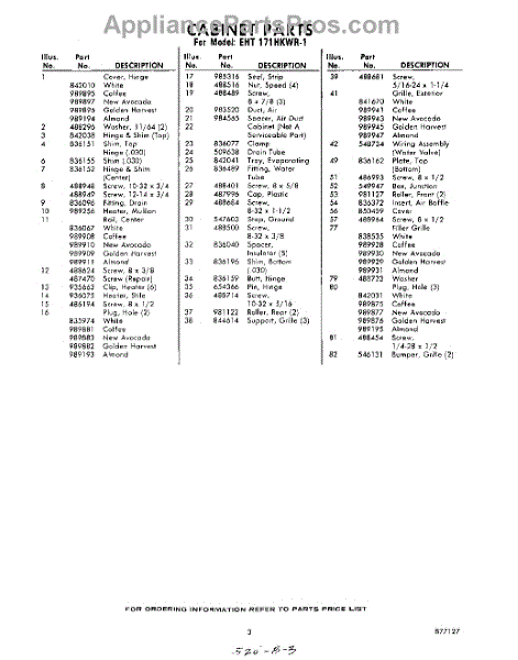 Parts for Whirlpool EHT171HKWR1: 03 - Section Parts