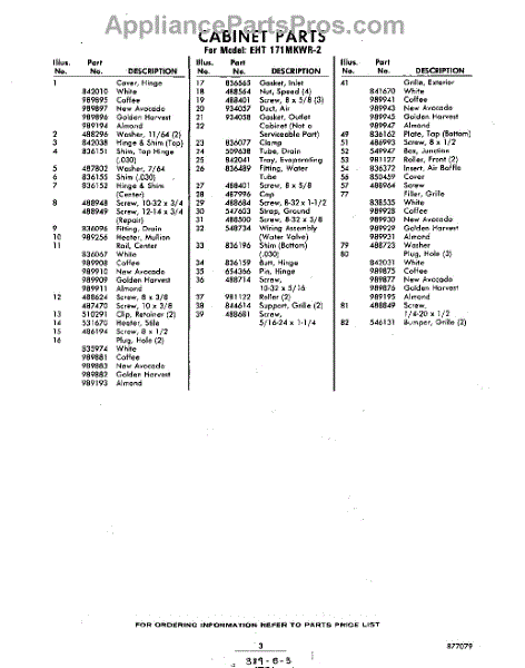Parts for Whirlpool EHT171MKWR2: 03 - Section Parts