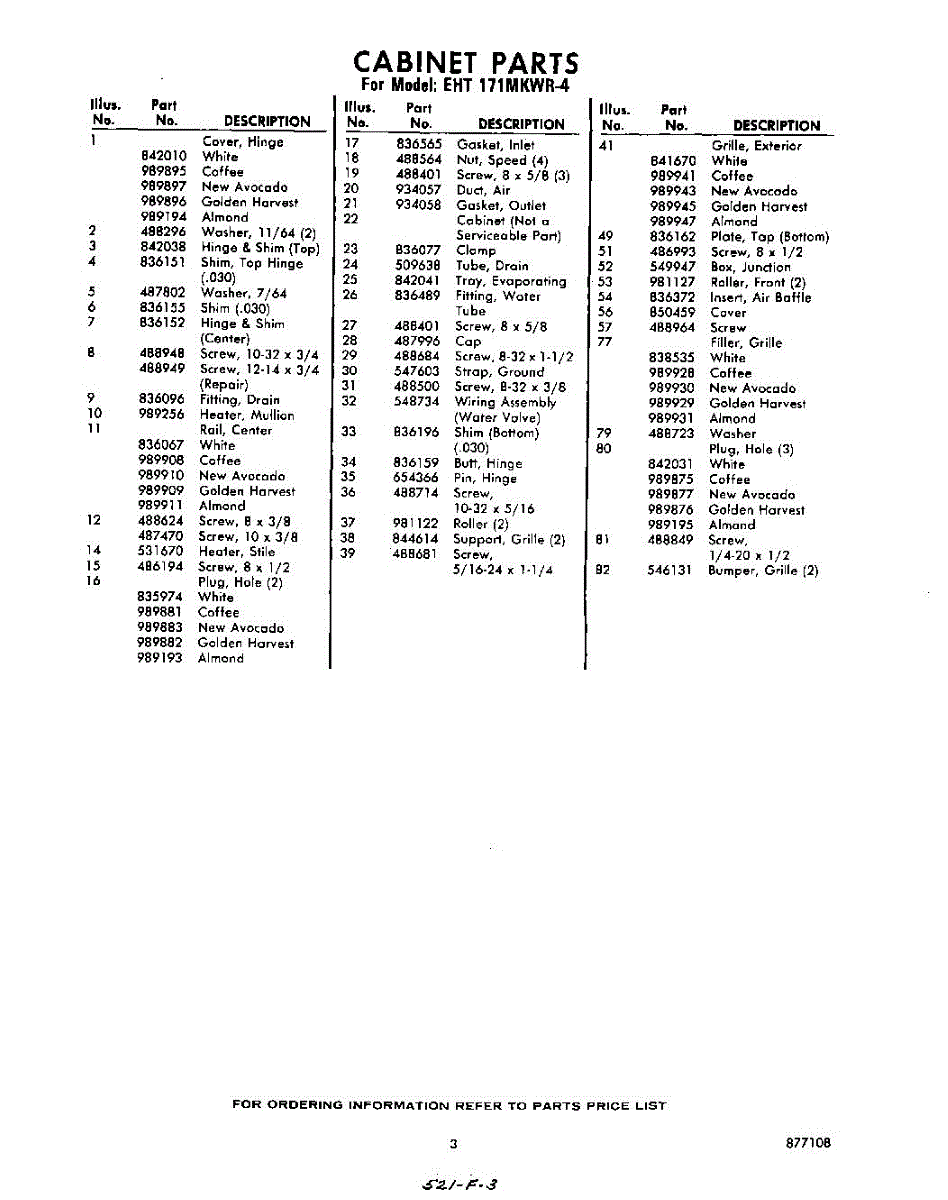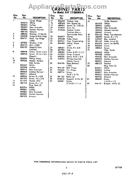 Parts for Whirlpool EHT171MKWR4: 03 - Section Parts