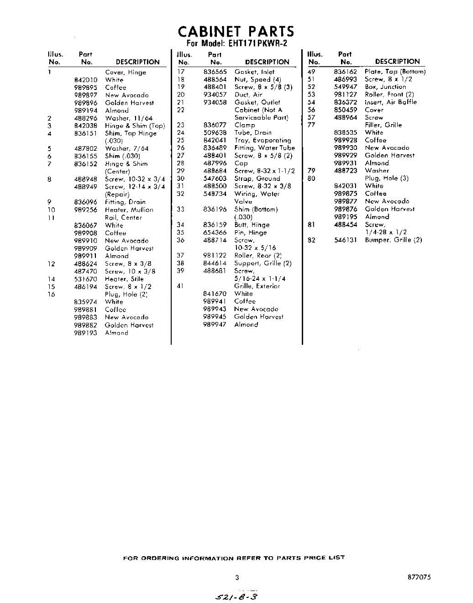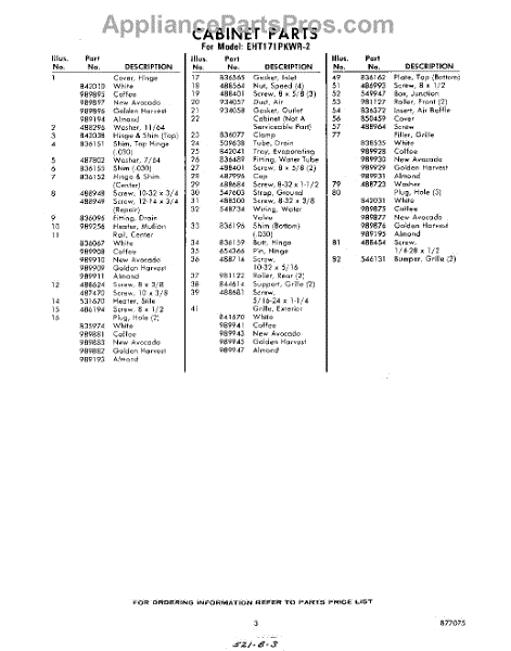 Parts for Whirlpool EHT171PKWR2: 03 - Section Parts