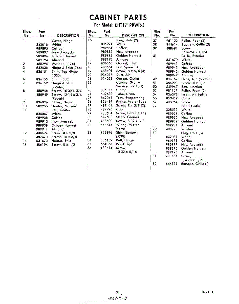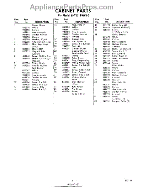 Parts for Whirlpool EHT171PKWR3: 03 - Section Parts