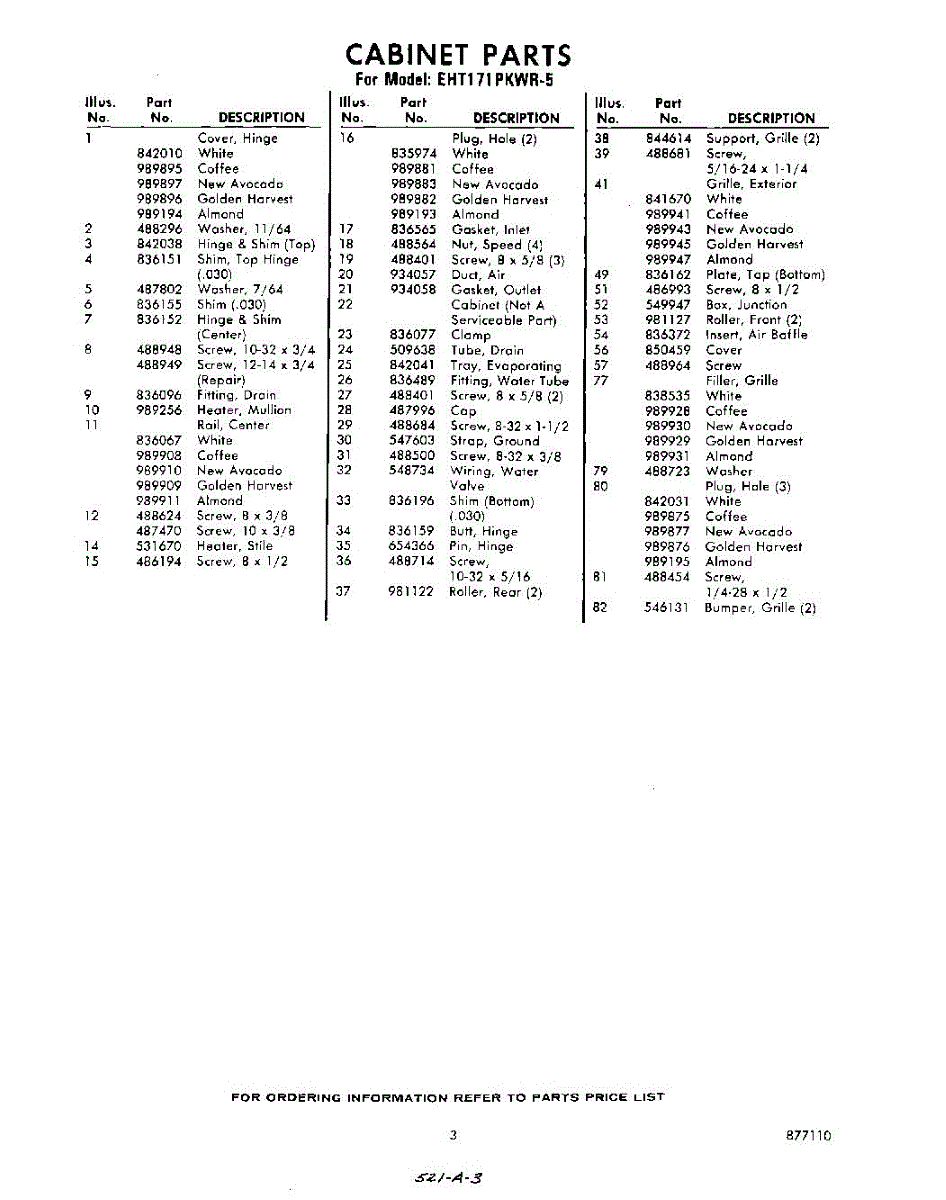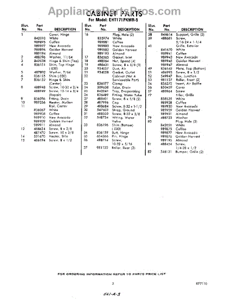 Parts for Whirlpool EHT171PKWR5: 03 - Section Parts