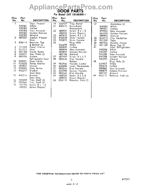 Parts for Whirlpool EHT181AKWR1: 03 - Section Parts