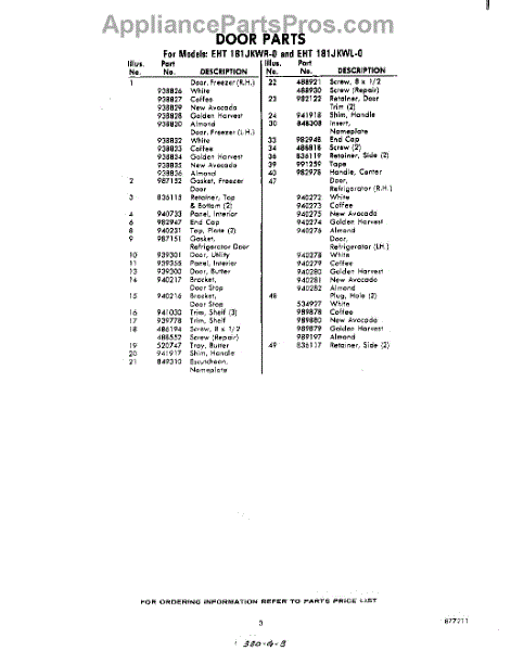 Parts for Whirlpool EHT181JKWR0: 03 - Section Parts