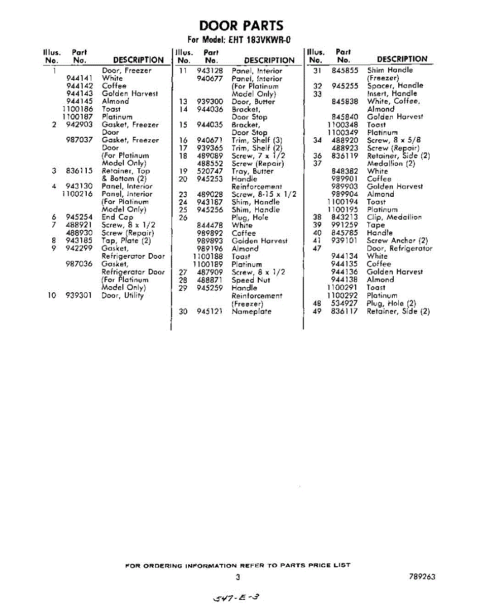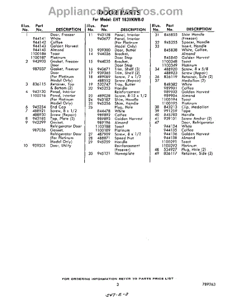 Parts for Whirlpool EHT183VKWR0: 03 - Section Parts
