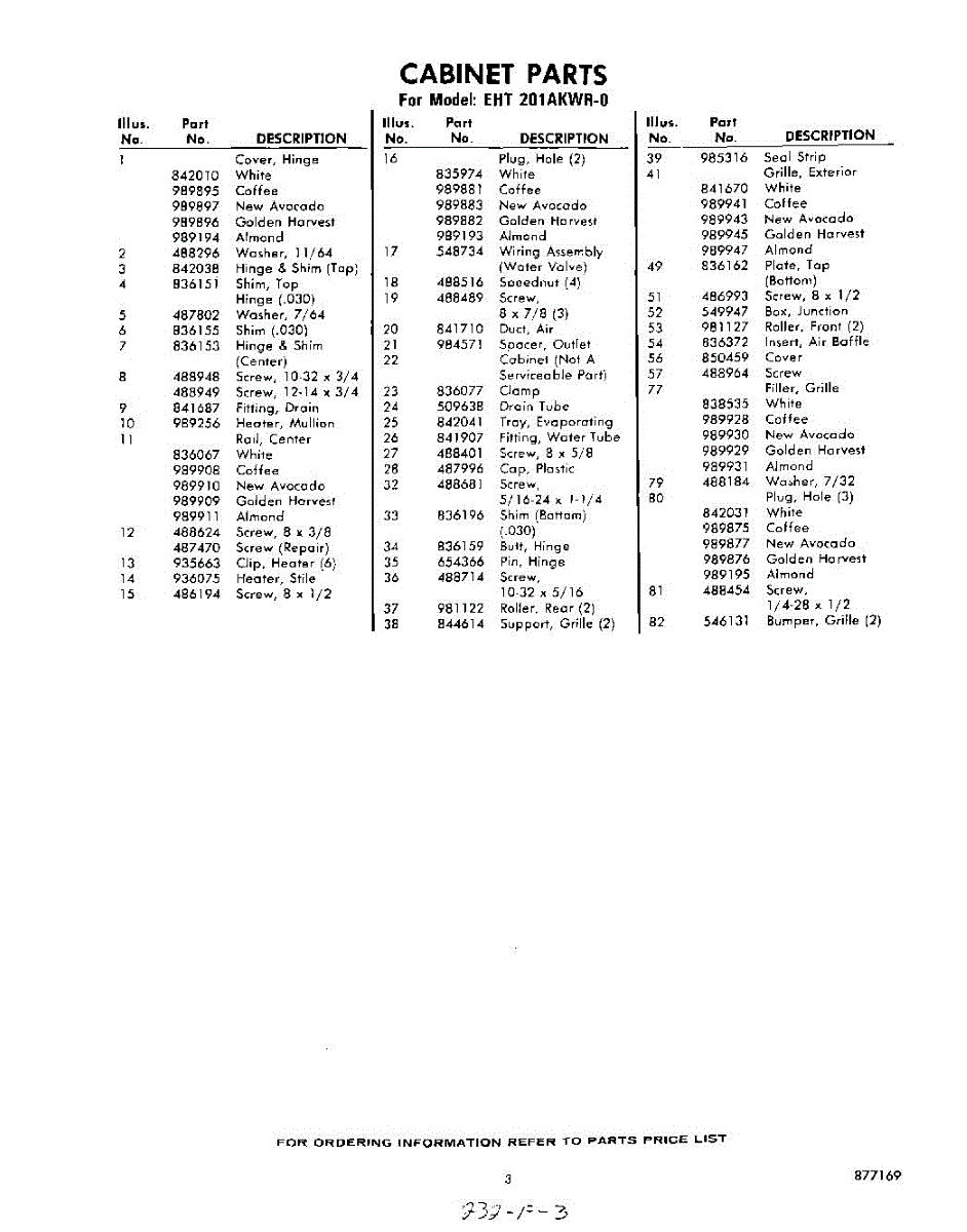 Parts for Whirlpool EHT201AKWR0: 03 - Section Parts