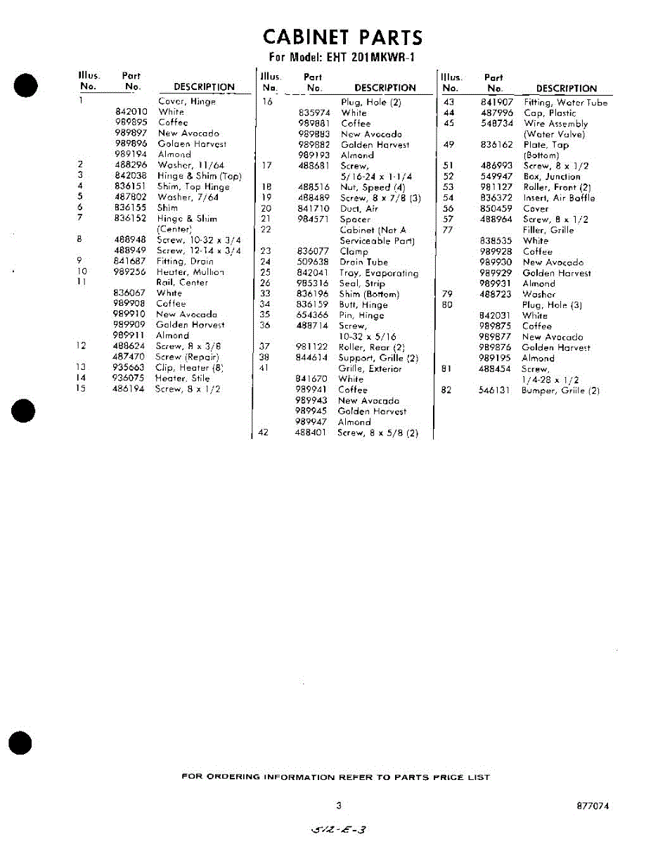 Parts for Whirlpool EHT201MKWR1: 03 - Section Parts