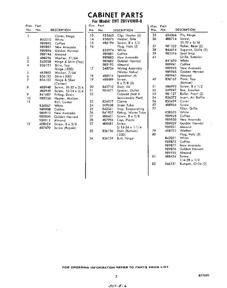 Parts for Whirlpool EHT201VKWR0: 03 - Section Parts
