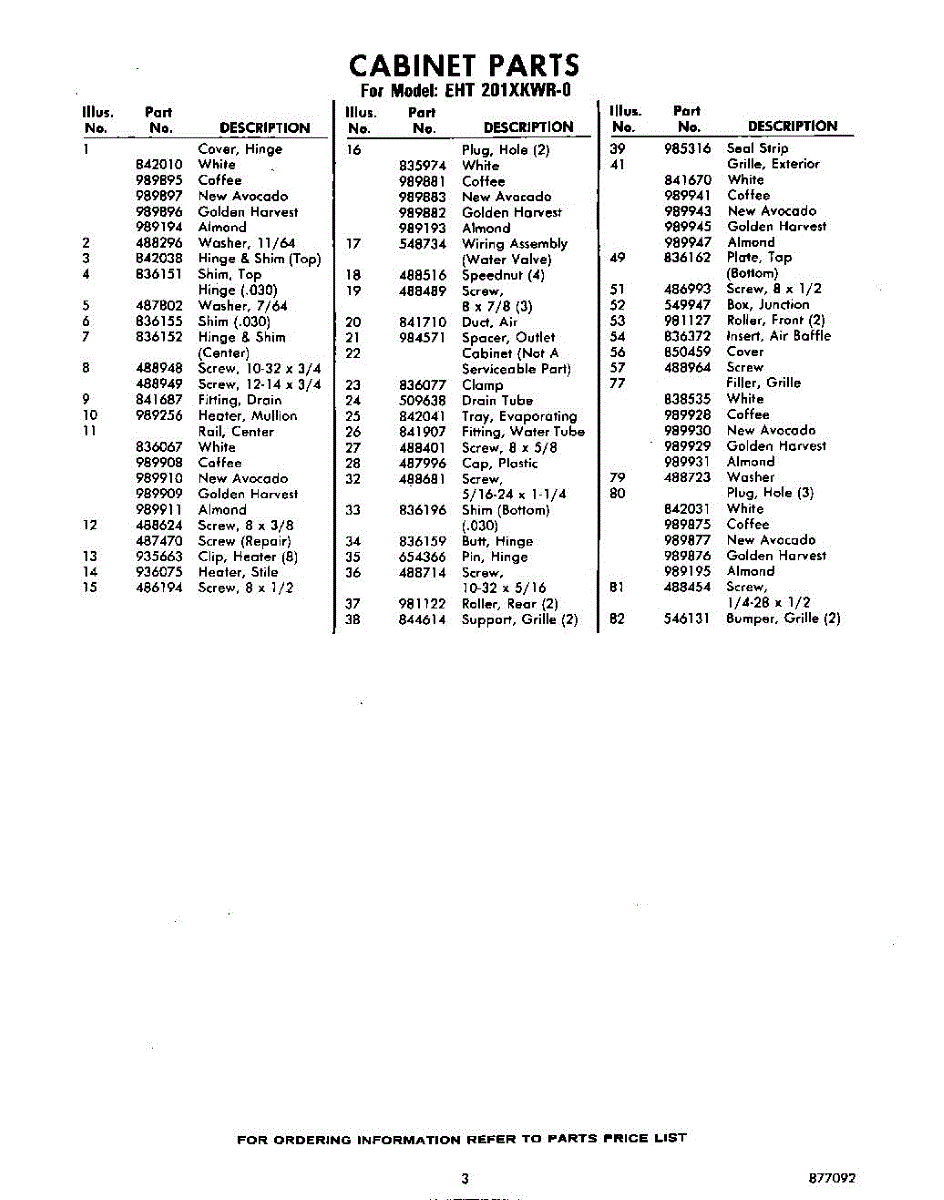 Parts for Whirlpool EHT201XKWR0: 03 - Section Parts