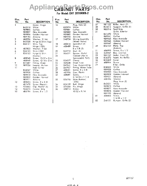 Parts for Whirlpool EHT201XKWR2: 03 - Section Parts