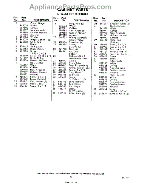 Parts for Whirlpool EHT201XKWR6: 03 - Section Parts