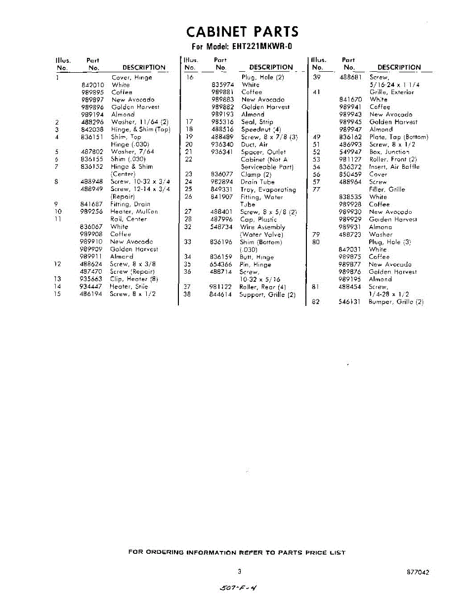 Parts for Whirlpool EHT221MKWR0: 03 - Section Parts