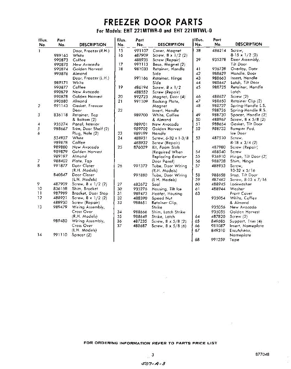 Parts for Whirlpool EHT221MTWR0: 03 - Section Parts