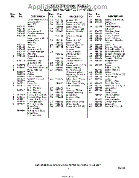 Parts for EHT221MTWR2