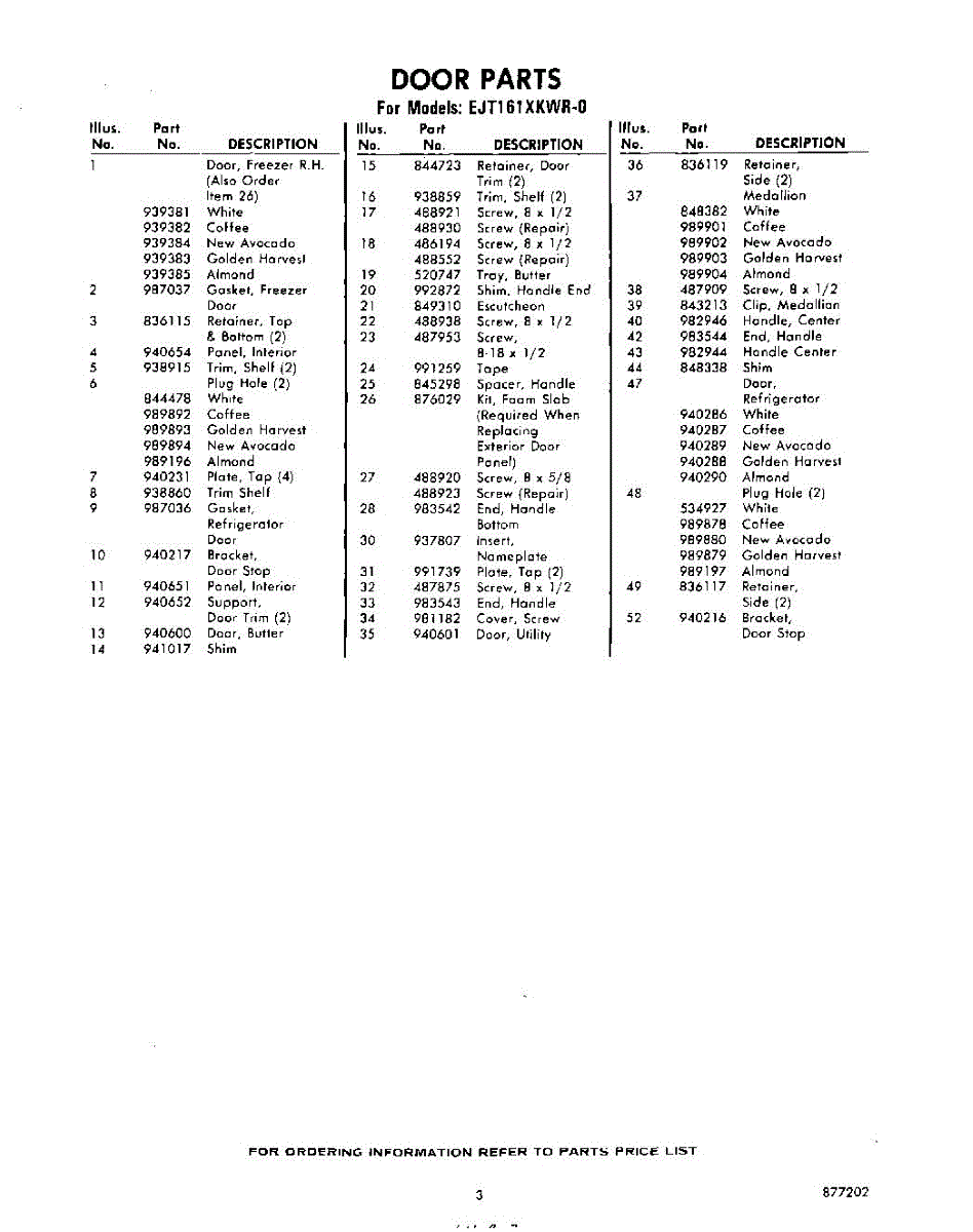 Parts for Whirlpool EJT161XKWR0: 03 - Section Parts