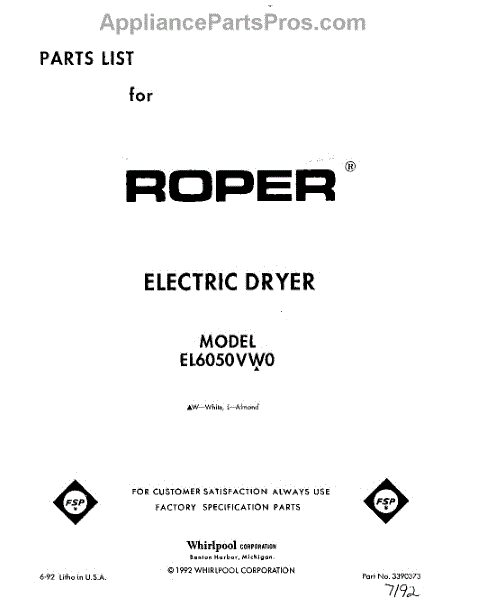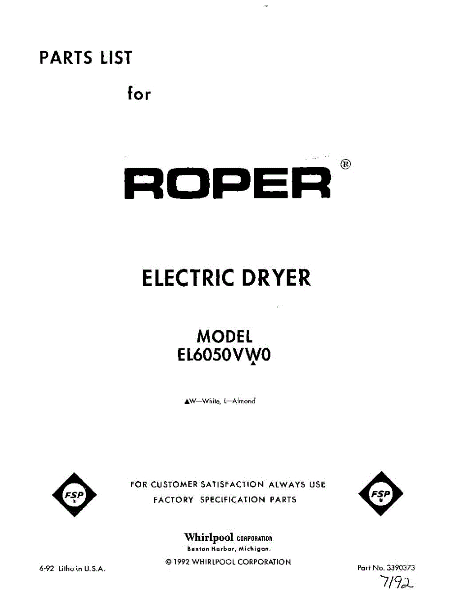 Parts for Whirlpool EL6050VL0: 01 - Section Parts