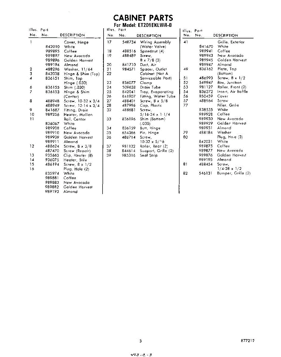 Parts for Whirlpool ET201EKLWR0: 03 - Section Parts