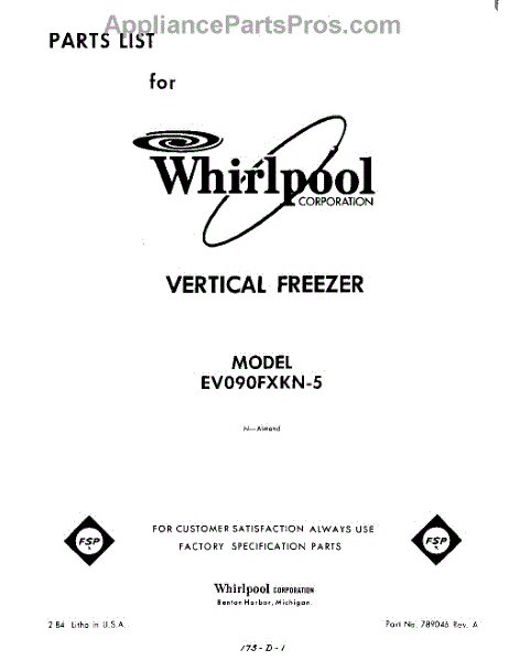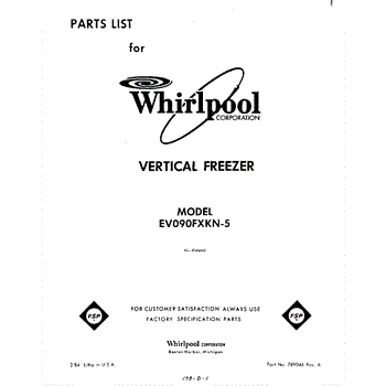 Parts for Whirlpool EV090FXKN5: 01 - Section Parts