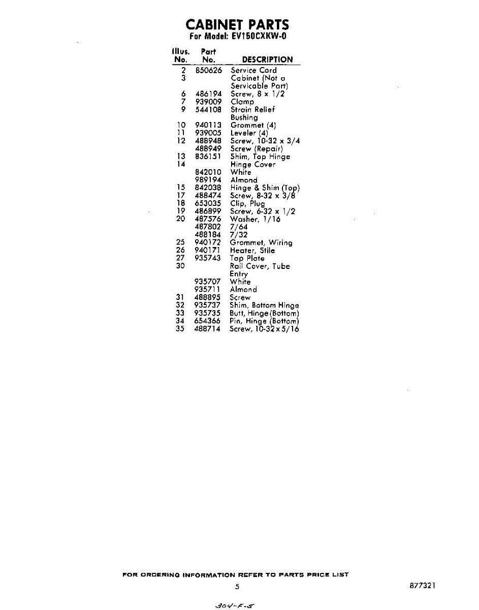 Parts for Whirlpool EV150CXKW0: 05 - Section Parts