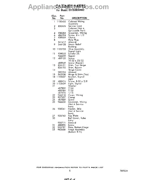 Parts for EV15HKXRW2