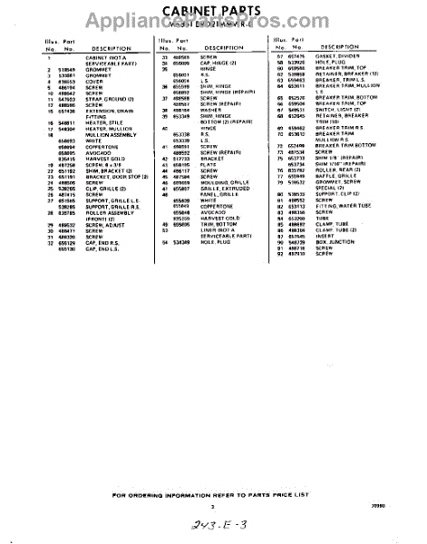 Parts for Whirlpool EVD21MMWR0: 03 - Section Parts