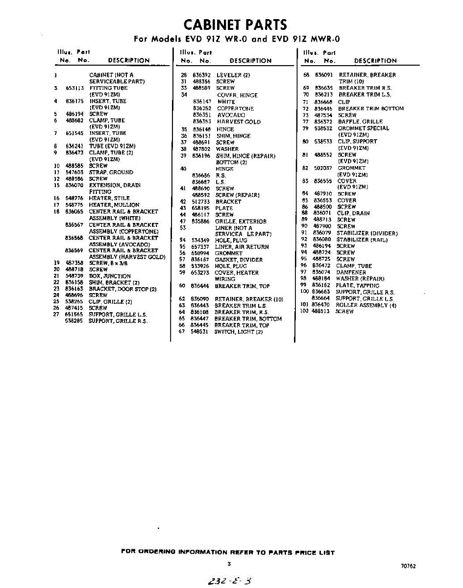 Parts for Whirlpool EVD91ZMWR0: 03 - Section Parts