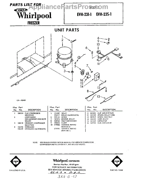 Parts for Whirlpool EVH23I1: 01 - Section Parts