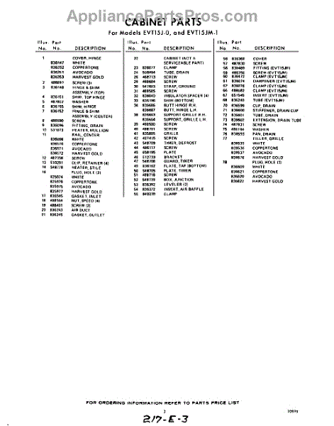 Parts for Whirlpool EVT15J0: 03 - Section Parts