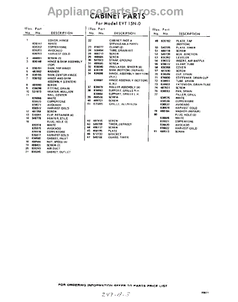 Parts for Whirlpool EVT15NWR0: 03 - Section Parts