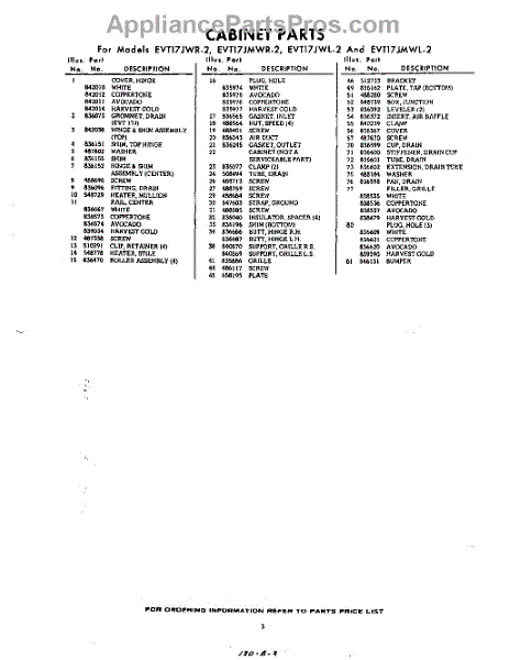 Parts for Whirlpool EVT17JWR2: 03 - Section Parts