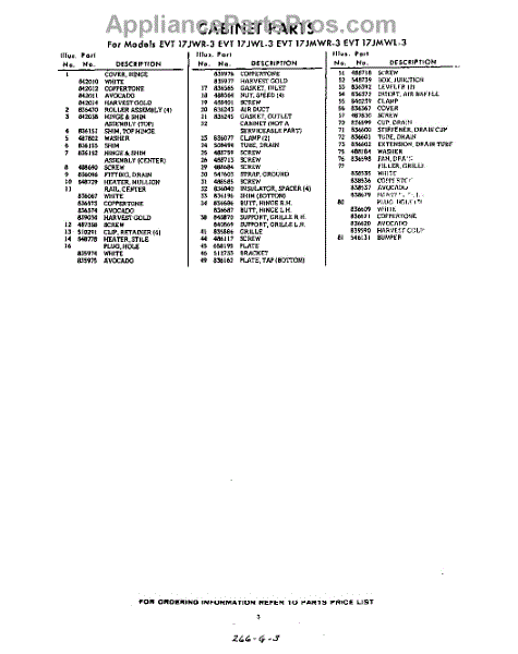Parts for EVT17JWR3