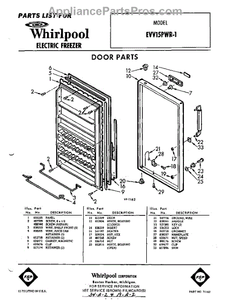 Parts for Whirlpool EVV15PWR1: 01 - Section Parts