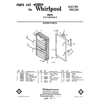 Parts for Whirlpool EVV18SWR0: 01 - Section Parts