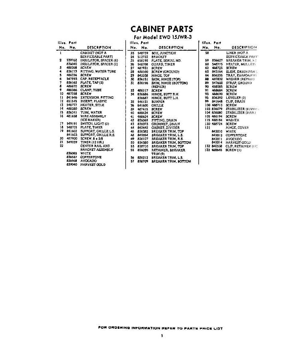 Parts for EWD15JWR3