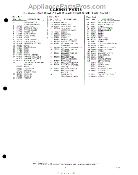 Parts for EWD17JMWR0
