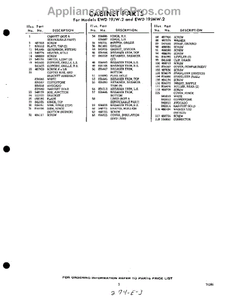 Parts for Whirlpool EWD19JW2: 03 - Section Parts