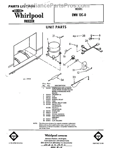 Parts for Whirlpool EWH12C0: 01 - Section Parts