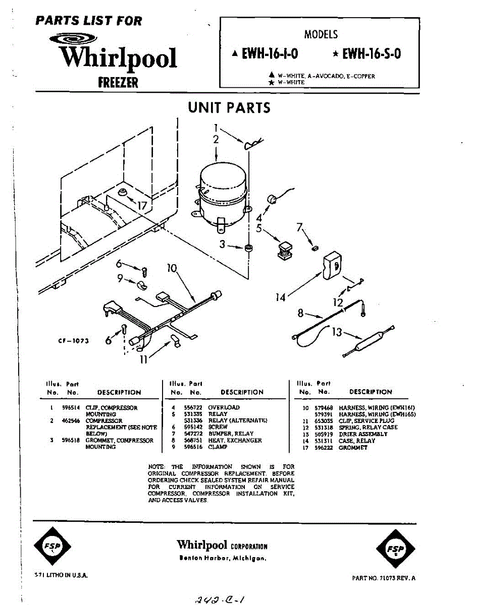 Parts for Whirlpool EWH16I0: 01 - Section Parts