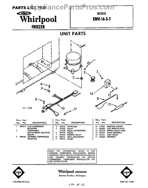 Parts for Whirlpool EWH16S1: 01 - Section Parts