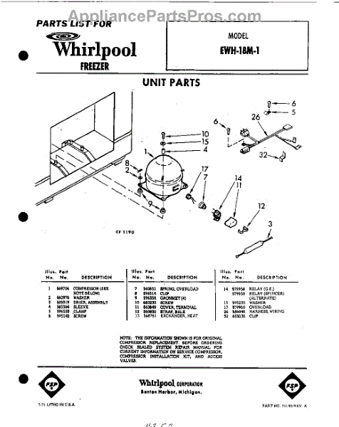 Parts for Whirlpool EWH18M1: 01 - Section Parts