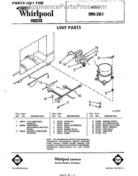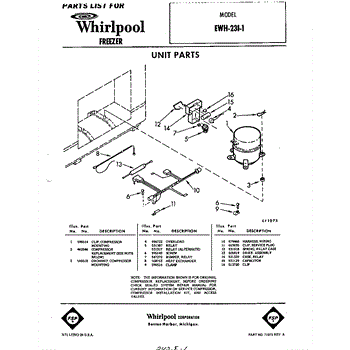 Parts for Whirlpool EWH23I1: 01 - Section Parts